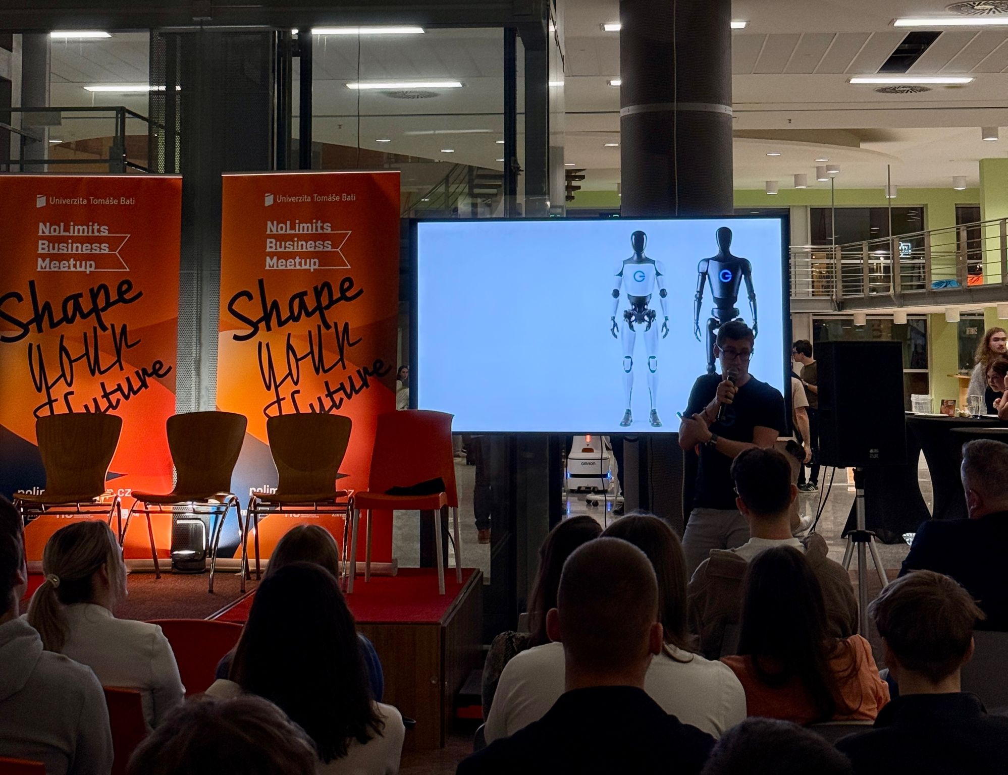At the NoLimits Business Meetup at Tomas Bata University in Zlín, Honza presented the plans for George — from the technology through the Robotics-as-a-Service business model to the vision of a European-sovereign robotics platform.