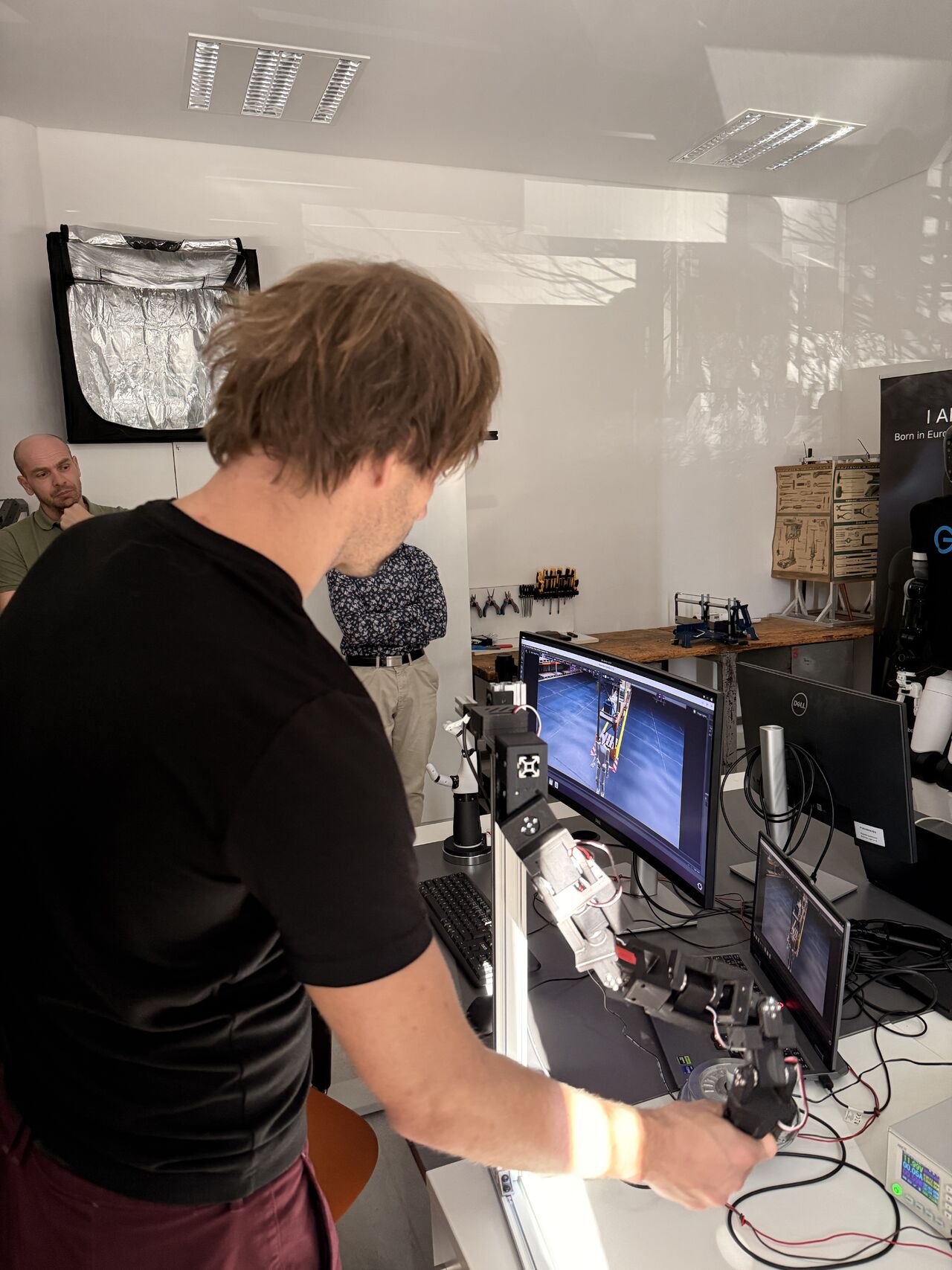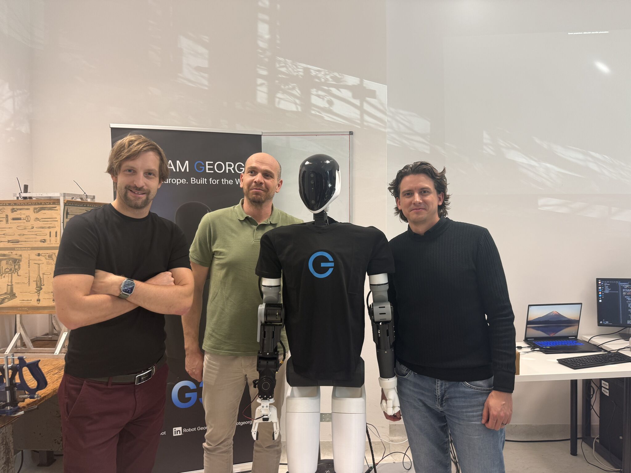 Last week, three representatives from Škoda Auto — Ondřej Ouhrabka, Lukáš Altman Kousal, and Tomáš Posekaný — arrived at our laboratory in Zlín. No formal presentation. They came to see how George works.